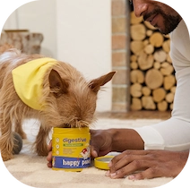 Our co-founders, Ali and Jameson, launched Happy Paws in 2024 with the belief that every dog owner should be able to give their pet high-quality health supplements. We believe that you shouldn’t need an encyclopedia to understand an ingredients label. Every dog chew should have simple, clean ingredients: no artificial colors or flavors, no GMOs, no fillers, no BS. We want to take the guesswork out of finding the right supplement for your dog.